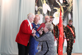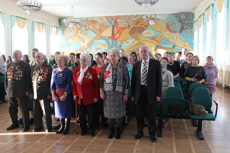 Позже директор СЛИ поблагодарила фронтовиков и тружеников тыла, низко преклонив перед ними колени, как бы передав благодарность последующих поколений за тяготы, перенесённые ими в годину лихолетья. Зал бурно на это отозвался аплодисментами.