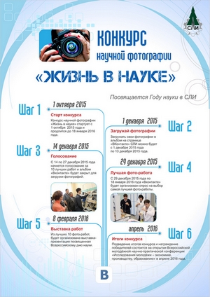 С 1 октября и по 30 ноября 2015 года – создание фоторабот в рамках конкурса «Жизнь в науке».