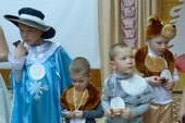 Какой же был восторг ребят, когда под хруст снега в зал вошли самые долгожданные гости вечера – Дед Мороз и Снегурочка. Вместе с ними хозяева детского учреждения в костюмах: зайчиков, медвежат, лисичек, мушкетеров, красавиц фей, а так же символа приходящего года – мартышек, отправились в путешествие на волшебном поезде, где на каждой станции их ожидали игры и развлечения.