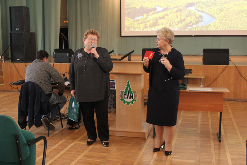 За подготовку кадров для лесной отрасли и многолетний труд благодарственное письмо регионального парламента Валентина Жиделева вручила ведущему специалисту учебно-методического отдела вуза Наталии Пестовой. В этот день шести преподавателям и сотрудникам СЛИ было присвоено звание «Почётный работник Сыктывкарского лесного института»: Татьяне Поповой, декану факультета лесного и сельского хозяйства; Любови Ширяевой, доценту кафедры «Агроинженерия, электро- и теплоэнергетика»; Наталье Кокшаровой, старшему преподавателю кафедры «Экономика отраслевых производств»; Елене Илюшенко, заведующей лабораторией учебно-лабораторного центра; Анжеле Кузивановой, заведующей лабораторией учебно-лабораторного центра и Людмиле Донской, уборщику служебных помещений. Такую высокую награду получают лишь те, кто отработал в вузе двадцать и более лет.