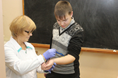 Как гласит народная мудрость: делу – время, а потехе час. Первые экскурсионные маршруты пролегли через учебно-научные лаборатории, где ребят ожидали преподаватели и сотрудники СЛИ. На пятом этаже второго корпуса вуза в лаборатории «Оценка физических факторов и производственной безопасности в техносфере» школьники познакомились с работой приборов, которые помогают определить состояние микроклимата, напряженности труда, уровней радиоактивности, шума и вибрации. Здесь же они с помощью преподавателя Петра Мусихина смогли измерить величину воздействия электромагнитных излучений своих мобильных телефонов на организм человека.