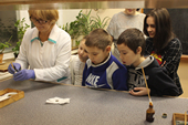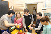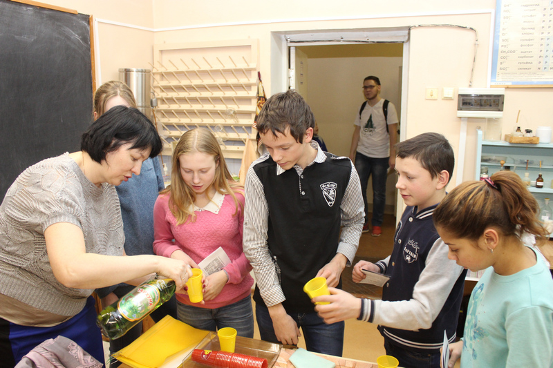 В это же время воспитанники детских домов находились под воздействием магии в химической лаборатории, где ребята не только наблюдали за фокусами старшего преподавателя кафедры «Охрана окружающей среды и техносферная безопасность» Анжелы Кузивановой и инженера кафедры «Химия и химическая технология» Ирины Мороковой, но и сами в них участвовали - заживляли кровоточивые раны, медные монеты делали серебряными, узнавали, чем вреден акролеин, находящийся в жареном масле, и какие кислоты используются в производстве лимонада.