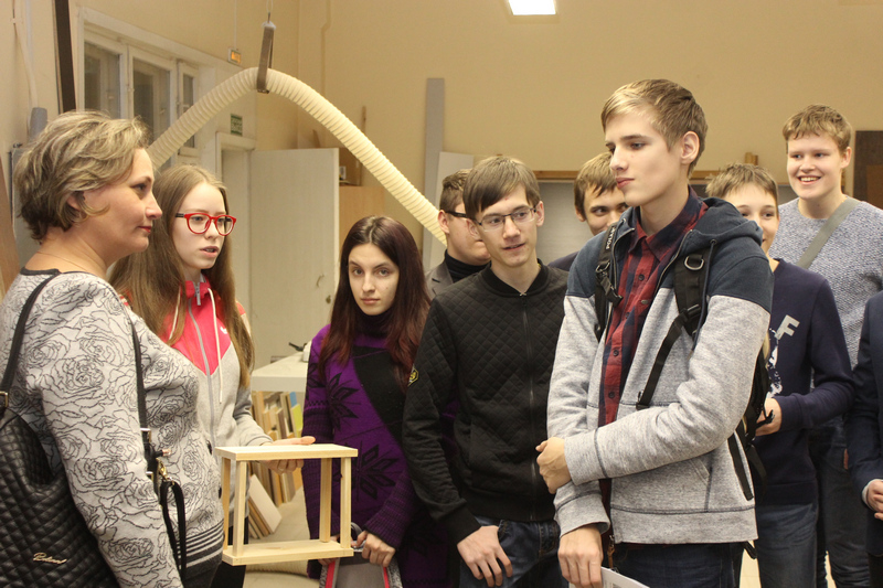 На площадке лаборатории «Инновационные технологии мебельной и деревообрабатывающей промышленности» гостям Лесного пришлось попробовать себя в роли студентов, обучающихся в институте по данному профилю. Они изготовили скворечники, чтобы развесить их в школьном дворе.