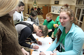 Самый главный из них – гостеприимство. Активисты объединённого совета обучающихся СЛИ, они же организаторы профориентационной акции, встречали у входа своих юных друзей и проводили экскурсии по всему институту. Казалось, что в тот вечер не осталось ни одного уголка в вузе, где бы ни побывали старшеклассники школ Сыктывкара и воспитанники двух детских домов - № 20 и № 1. Несмотря на двадцатиградусный мороз, одни приехали из Эжвы, а другие из Красного Затона.