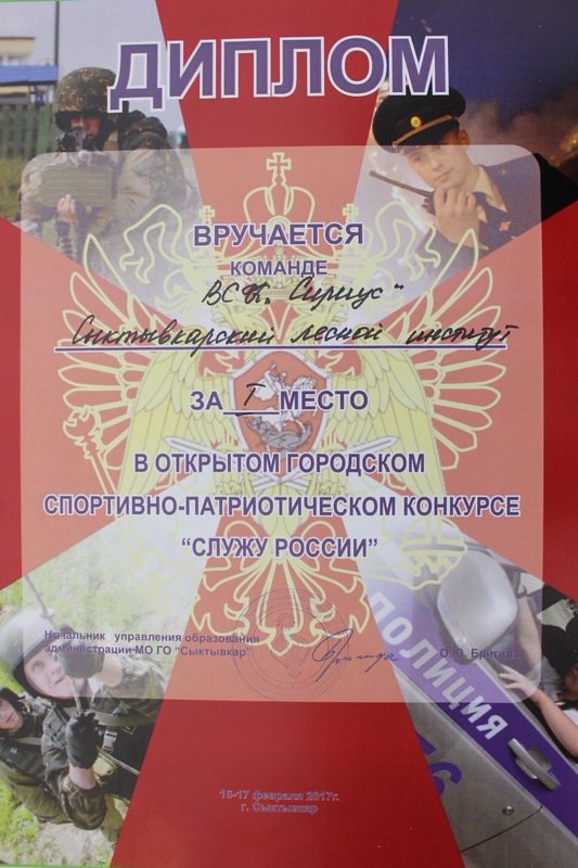 С 16 по 17 февраля 2017 г. прошел открытый Городской спортивно-патриотический конкурс «Служу России», посвященный XIX Всемирному фестивалю молодежи студентов в Сочи.