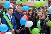 Мэр столицы РК Валерий Козлов поздравил с Днём молодёжи всех собравшихся на площади и обратился к выпускникам: «Давайте жить в Сыктывкаре, учиться в Сыктывкаре и работать в Сыктывкаре!»