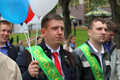 Студенты СЛИ гармонично влились в яркую колонну студентов, которая прошла в воскресенье, 25 июня, по улице Коммунистической - от Вечного огня до Стефановской площади. Огромные золотистые буквы названия института, парящие в воздухе, олицетворяли востребованность и конкурентоспособность его выпускников, а зелёные жилеты активистов, шедших в первых рядах, символизировали профессиональную специфику вуза, и всего нашего лесного региона.