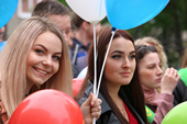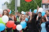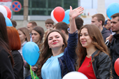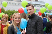 В ответ на приветствие руководителей города и республики студенты СЛИ, пришедшие на площадь вместе с директором Любовью Гурьевой и деканами факультетов Татьяной Поповой, Еленой Морозовой и Александром Самородницким, отвечали бурным ликованием.