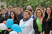 Зам. председателя Госсовета РК Валентина Жиделева с первых минут выступления послала в студенческие колонны праздничный эмоциональный заряд, и напомнила о том, что в эти минуты в других городах республики проходят такие же молодёжные шествия. Она предложила отправить со Стефановской площади общее поздравление в муниципалитеты. После переклички городов вице-спикер пожелала выпускникам найти достойную работу в Коми, состояться в жизни и найти свою вторую половинку.