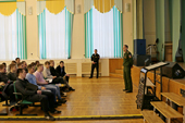 Аудитория вела себя активно, задавала вопросы, уточняла различные насущные моменты, такие как льготная ипотека, зарплата, необходимый уровень физической подготовки. На все вопросы молодое поколение инженеров получило подробные ответы и разъяснения.