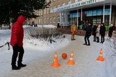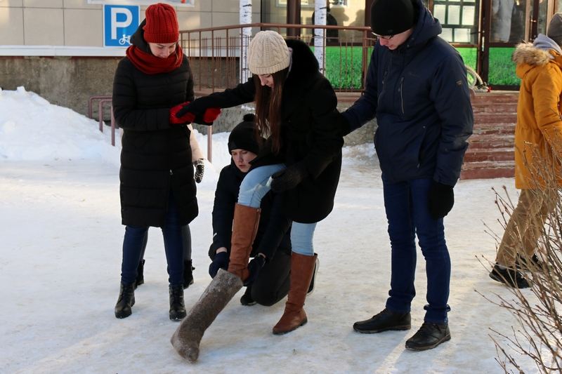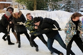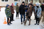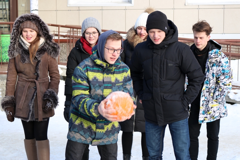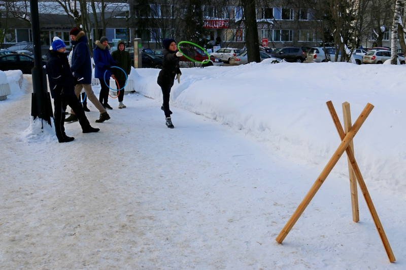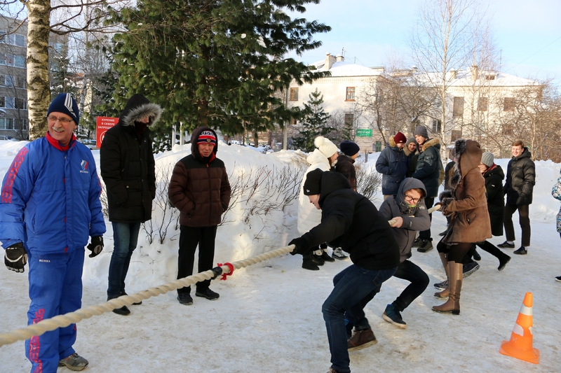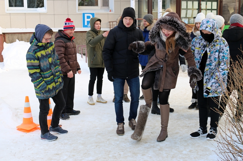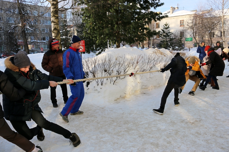 Команды Лесного института и Технологического лицея активно провожали зиму: метали мячи и валенки, кидали «лассо» - специальное приспособление оленеводов, перетягивали канат.