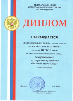 На прошедших 28 апреля - 02 мая 2018 года Всероссийских соревнованиях по спортивному туризму на пешеходных дистанциях «Весенний призыв 2018» в Марий Эл принимал участие студент 143 группы Безносиков Владислав Витальевич, мастер спорта России, член сборной команды России по спортивному туризму.