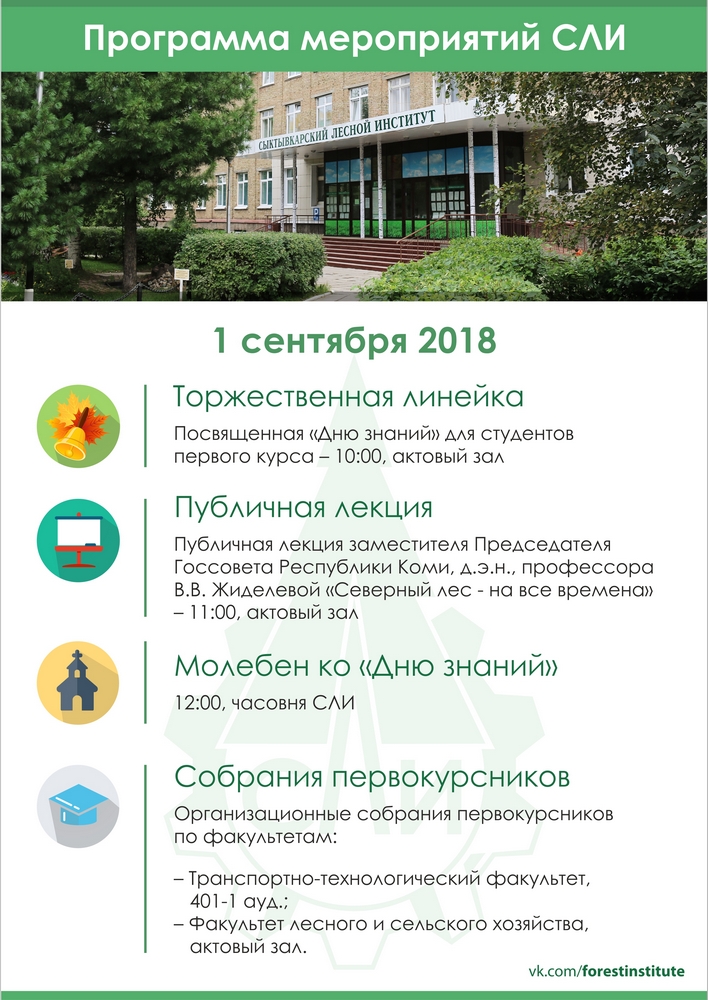 2. Публичная лекция заместителя Председателя Госсовета Республики Коми, д.э.н., профессора В.В. Жиделевой «Северный лес - на все времена» – 11:00, актовый зал;