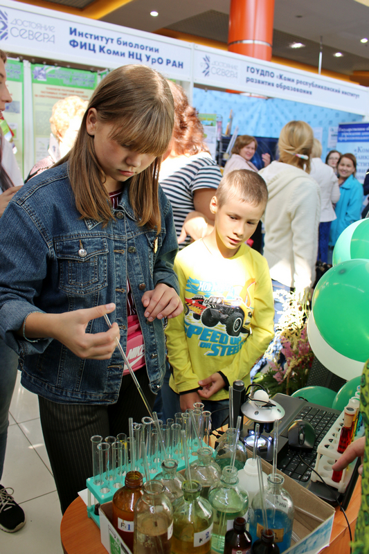 Работа площадки Сыктывкарского лесного института состояла из нескольких блоков, каждый из которых был направлен на собственную аудиторию. Первый блок - это презентация инновационных студенческих научных разработок в области биоэнергетики и лесовосстановления, многие из которых успешно применяются на предприятиях региона. На экране демонстрировались научные проекты, а их молодые авторы отвечали на вопросы. Здесь же любой желающий мог посадить саженец ели с помощью специальной посадочной трубы для сеянцев - Pottiputki. Этот эффективный, легкий и простой в обращении инструмент разработан заведующим кафедры «Технологические, транспортные машины и оборудование» Свойкиным В. Ф., Хозяиновым А. С. и доцентом кафедры «Экономика и управление» Белозеровой Н. В. Его испробовал в деле даже Министр сельского хозяйства Анатолий Князев, один из гостей площадки института.