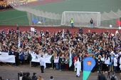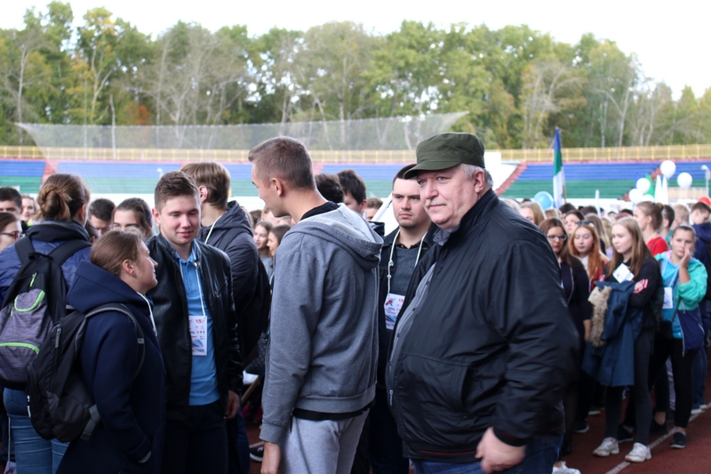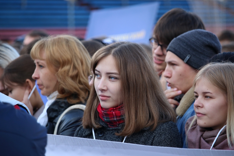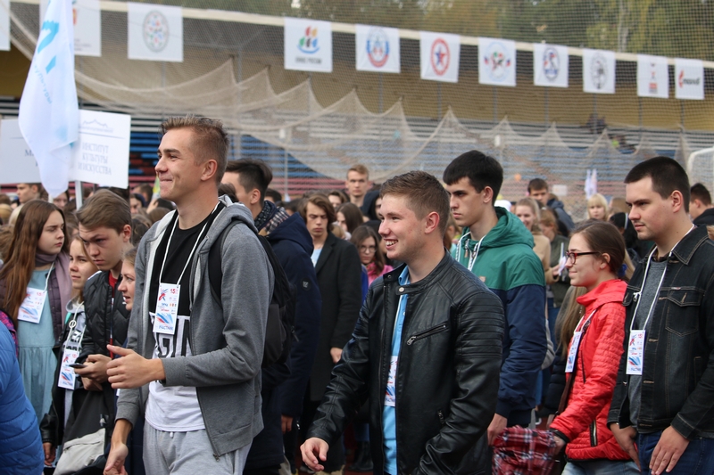 На стадионе был организован телемост, в котором студенты из 47 городов, начиная с Волгограда и заканчивая Южно-Сахалинском, поздравили друг друга с праздником и желали друг другу успехов в студенчестве.