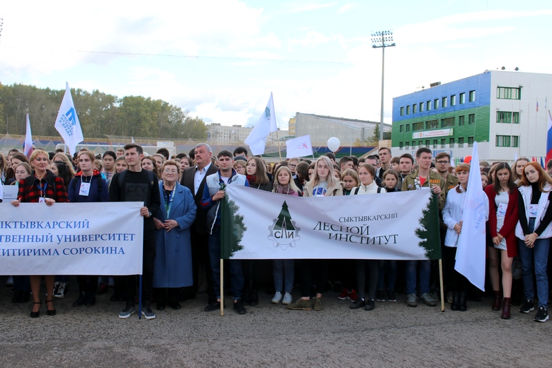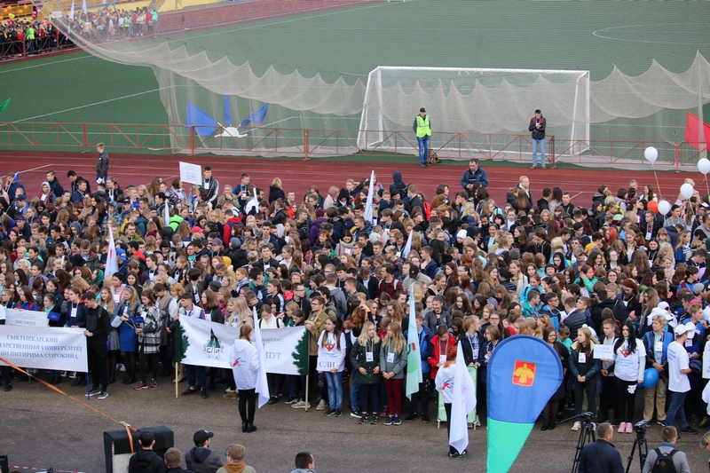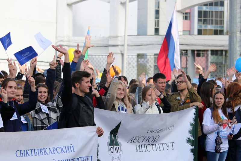 Первокурсники Лесного института стали неотъемлемой частью яркого и масштабного флешмоба «Парад студенчества», который прошел 15 сентября в крупнейших городах России. Сыктывкар впервые присоединился к зрелищной общероссийской акции и внес свой весомый вклад – в столице Коми в празднике приняло участие более трёх тысяч первокурсников из вузов и ссузов республики.