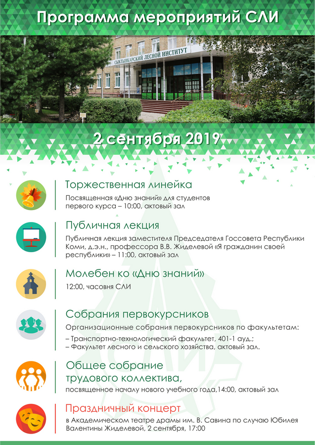 Уважаемые студенты и преподаватели, представляем вам программу мероприятий на 2 сентября 2019 года!