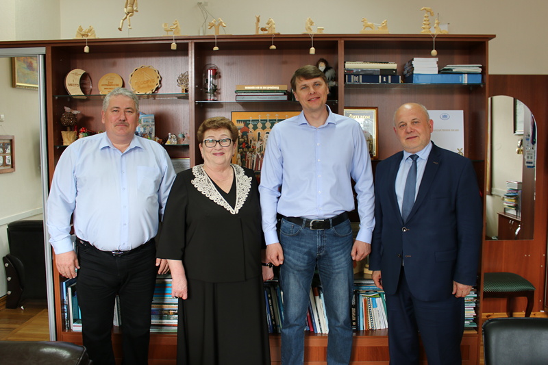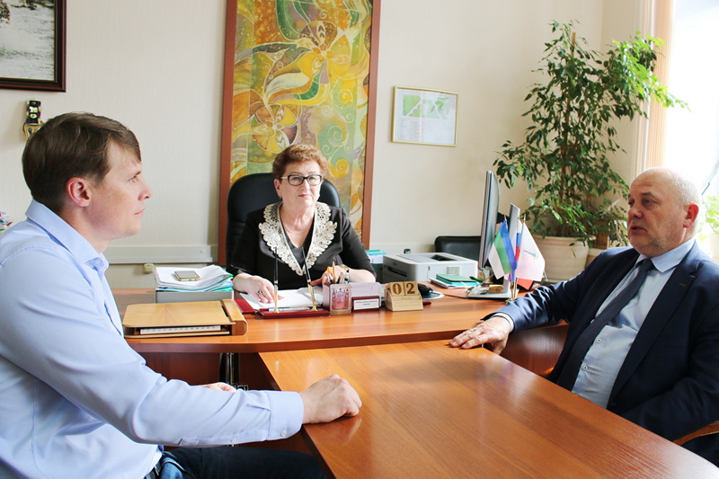 Ректору головного вуза также удалось встретиться с одним из работодателей института, директором ООО «Промтех-Инвест» Владиславом Федькиным. Юрий Иванович вместе с директором СЛИ Любовью Гурьевой и заместителем директора СЛИ по административно-хозяйственной работе Дмитрием Кузнецовым наградили благодарственной грамотой руководителя предприятия, много раз безвозмездно помогавшего своей Alma-mater.