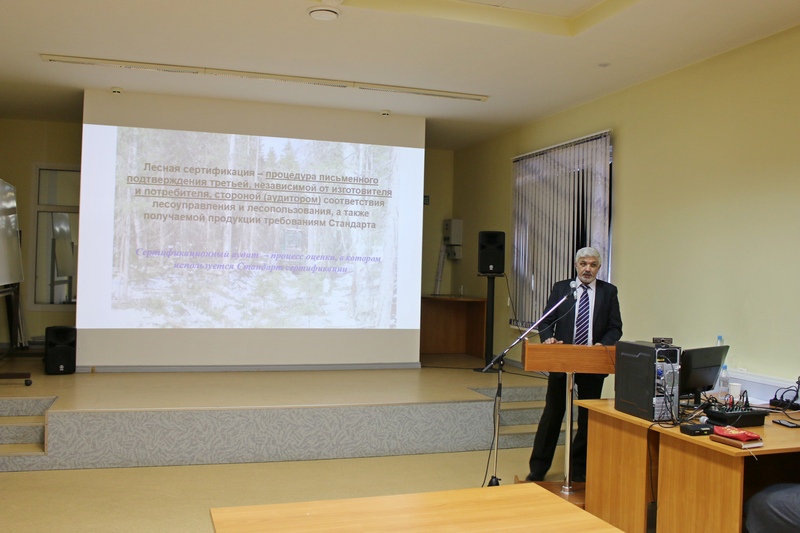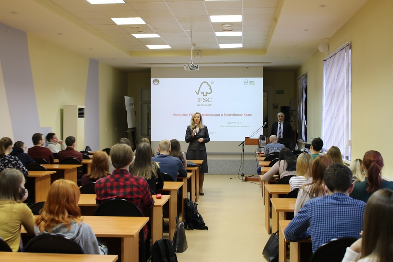 4 декабря в Сыктывкарском лесном институте состоялась лекция председателя Общественного совета при Минприроды Республики Коми и директора фонда «Серебряная тайга» Юрия Паутова. Присутствующие на лекции студенты узнали об истории становления FSC сертификации в республике и ее дальнейшем развитии. Дело в том, что Фонд в свое время был инициатором процесса добровольной лесной сертификации в Коми.