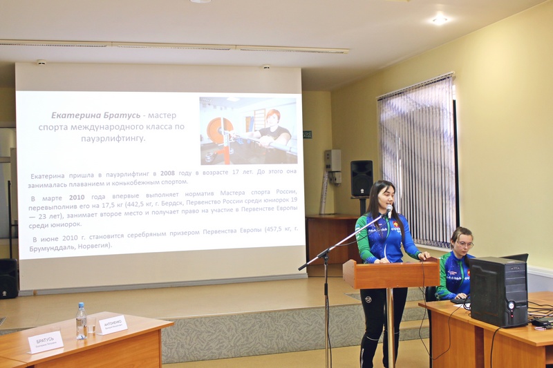 Члены сборной команды по туризму и ориентированию Макурина Александра и Анна Кузнецова выступили с презентацией о наших спортсменах, рассказав немного о их личной биографии, спортивном пути и достижениях.