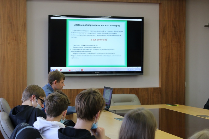 После напутственных слов ребят ждала насыщенная стартовая сессия Школы с важной и актуальной темой – «Защита и охрана лесов». Школьники первым делом побывали в Коми лесопожарном центре, где познакомились с работой центра, с задачами, которые стоят перед коллективом, посетили диспетчерскую – куда поступают сообщения о лесных пожарах. Там учащимся наглядно показали, как осуществляется патрулирование лесов с целью выявления и предотвращения распространения лесных пожаров. Система позволяет в режиме реального времени видеть сведения о каждом таком инциденте, анализировать всевозможный картографический материал.
