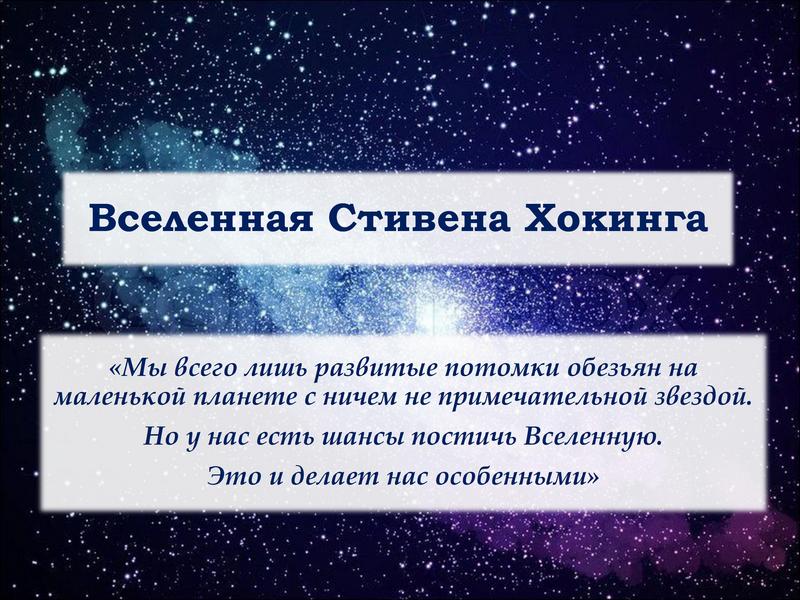 «Конечно, за 7-10 минут сложно рассказать о жизни и деятельности человека, тем более, ученого. Но в процессе подготовки, изучив необходимые материалы, ребята подошли к понимаю самого главного – того (цитируя Стивена Хокинга), что: „Какой бы трудной ни казалась жизнь, всегда можно что-то сделать и чего-то добиться. Главное – никогда не сдаваться. Проявлять воображение и творить будущее“», – отметила Елена Васильевна.