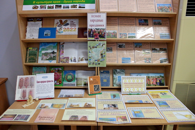 Добавим, что в рамках пленарного заседания была открыта тематическая выставка «В культуре края – душа народа», где представлены книги по коми фольклору и коми народным праздникам, предметы народного творчества из дерева, бересты, корней и лозы, фотографии поделок, изделия, сделанные своими руками. Украсил выставку большой иллюстративный материал.