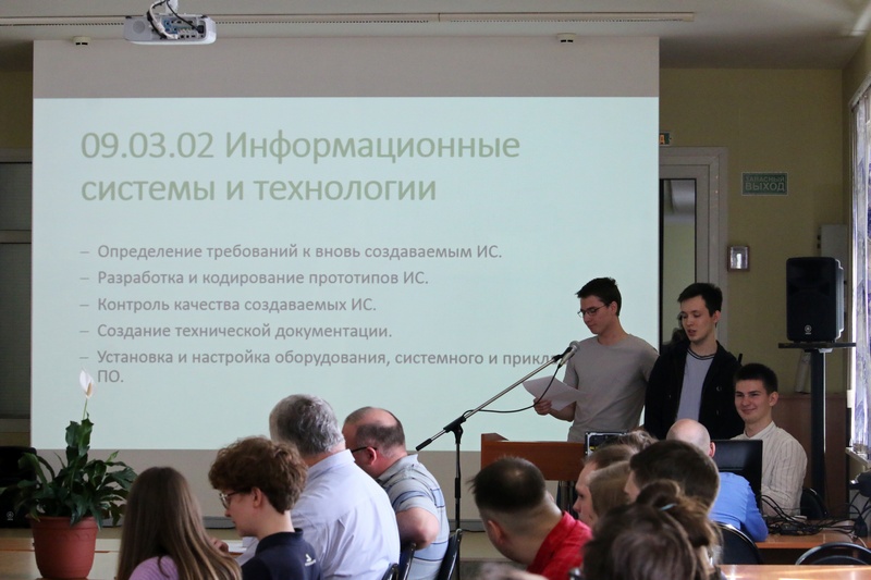С работой «IT-профессии сегодня и завтра» выступили первокурсники СЛИ. По словам ребят, экономика России переживает тектонические перемены, перестраиваются целые отрасли. Это не просто мода, не очередной стереотип лучших профессий, а острая необходимость. Уже в 2020 году стране не хватало более 150 000 IT-специалистов.