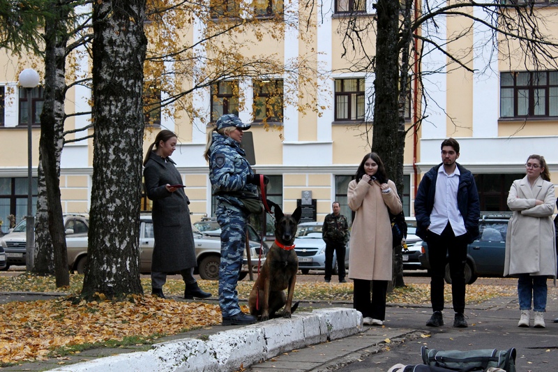 После общения с молодежью, организаторы пригласили инспектора-кинолога Сыктывкара Марию Власову для того, чтобы она наглядно продемонстрировала, как работает специально обученная собака при поиске наркотических средств. В роли сыщика выступила трехлетняя служебная собака. Эксперт продемонстрировала несколько вариантов поиска психотропных веществ: в дорожных сумках и на теле человека.
