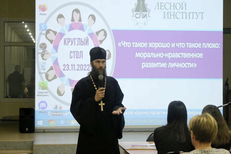 Студенческий круглый стол «Что такое хорошо и что такое плохо: морально-нравственное развитие личности» прошел в Сыктывкарском лесном институте 23 ноября и был организован в рамках республиканской научно-практической конференции «Духовно-нравственное и патриотическое воспитание детей и молодежи» регионального этапа XXXI Международных Рождественских образовательных чтений «Глобальные вызовы современности и духовный выбор человека». Студенты порассуждали о роли религиозного воспитания в духовно-нравственном развитии человека. Гостем встречи стал иерей Сыктывкарской Епархии Максим Стыров.