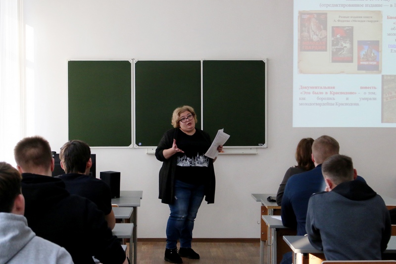 Представитель библиотеки Сыктывкарского лесного института Ирина Штельмах напомнила ребятам про литературные произведения и кинофильмы, где увековечена память о молодогвардейцах.