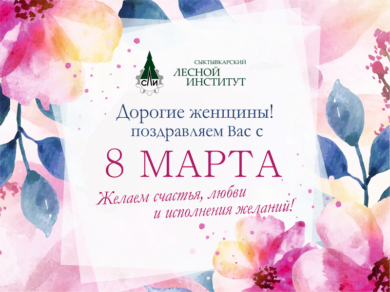 Дорогие наши женщины и девушки, примите искренние поздравления с Международным женским днем от всего мужского коллектива Сыктывкарского лесного института!