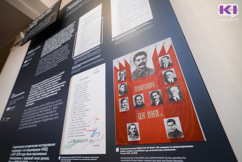 Выставка «Мифы Большого террора», основанная на исторических фактах и архивных документах, открылась в столице Коми еще в конце февраля. В ходе нее у студентов была возможность в подробностях изучить механизм функционирования репрессивной машины: от принятия решений до их исполнения. Для экспозиции был отобран ряд архивных документов: постановления Политбюро, секретные шифровки в ЦК, личные письма и доклады. Выставка затрагивает не только 1937-1938 гг., но и рассказывает о предшествующих событиях, которые сформировали в СССР почву для проведения массовых спецопераций НКВД, а также о периоде после смерти Иосифа Сталина и долгом процессе реабилитации жертв политических репрессий.