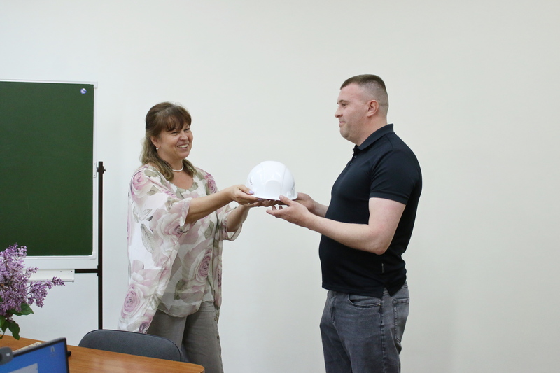 Каску строителя передал в Центр дополнительного образования Павел Косолапов, председатель итоговой аттестационной комиссии двух прежних выпусков, руководитель проектов ООО Специализированный застройщик «ГорКомСтрой» с пожеланием слушателям программы создания значимых проектов на благо Республики Коми.