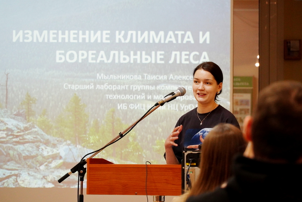 Заключительный доклад, который представила Таисия Мыльникова, старший лаборант отдела Флоры и растительности Севера Института биологии ФИЦ КНЦ УрО РАН, стал связующим звеном между изучением круговорота углерода, изменением климата и геоинформационными системами. Таисия рассказала не только о том, как изменяется климат, но и что требуется для того, чтобы сохранить наши бореальные леса в условиях этих изменений.