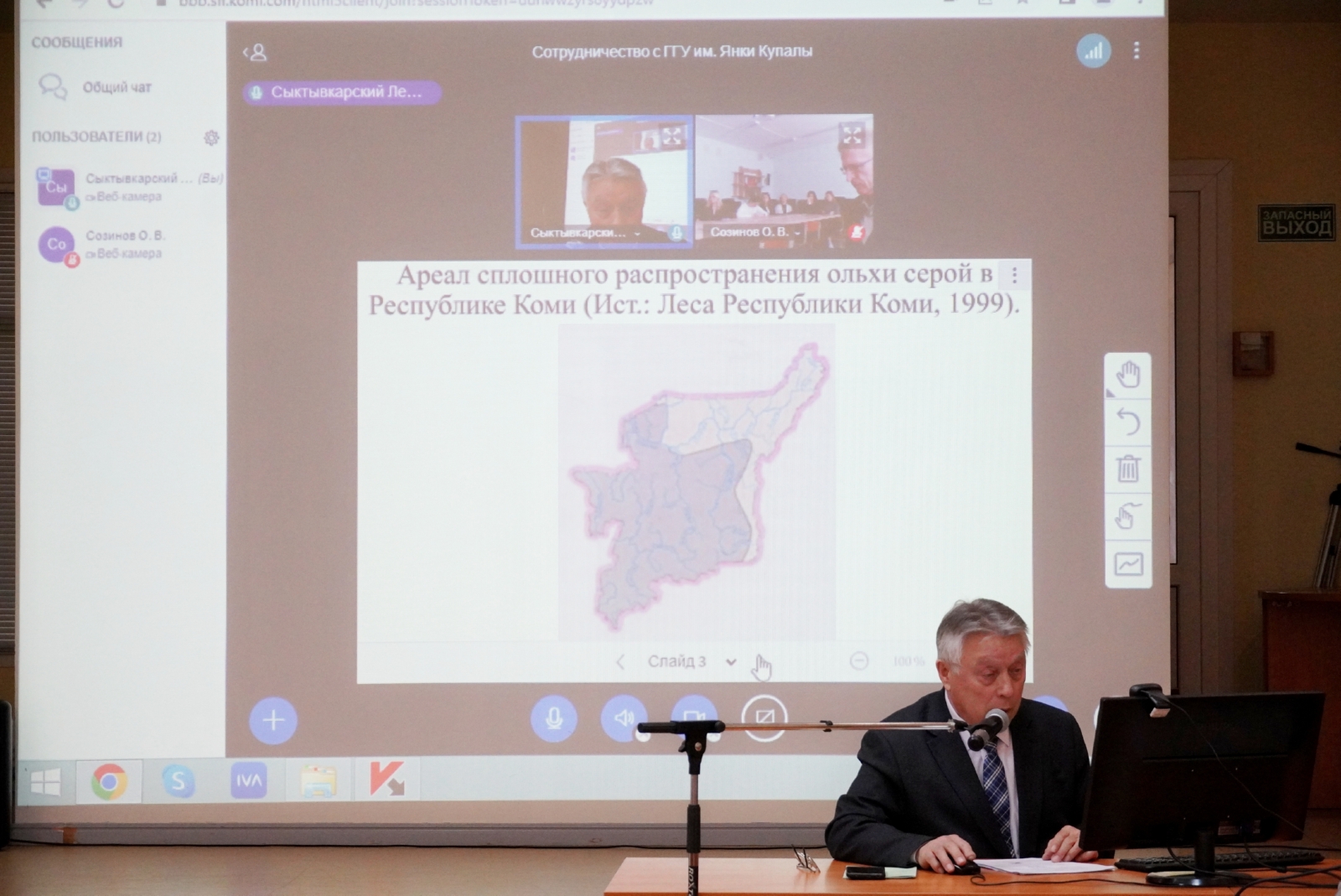 В рамках международного сотрудничества с дружественными странами Российской Федерации Сыктывкарский лесной институт продолжает активное взаимодействие с Гродненским государственным университетом им. Янки Купалы. Напомним, с февраля этого года были проведены шесть интересных открытых лекций преподавателей двух вузов. 16 мая состоялась завершающая лекция заведующего кафедрой «Ландшафтная архитектура, строительство и землеустройство» Геннадия Романова, после которой были подведены итоги совместной работы и намечены новые планы на следующий учебный год.