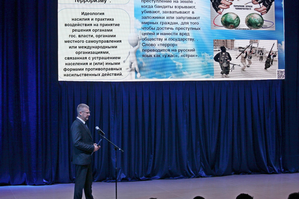 Также для студентов был показан фильм «Беслан. Жизнь за ангелов», которая рассказывает о жизни трех бывших заложниц, ставших очевидцами и свидетелями террористического акта в Беслане. Напомним, нападение было совершено на среднюю школу №1 города Беслана Республики Северная Осетия. Целью теракта были мирные жители, в том числе дети. В результате теракта погибли 314 человек из числа заложников, из них 186 детей. Всего, включая спасателей, погибло 333 человека, и не менее 783 получили ранения разной степени тяжести.