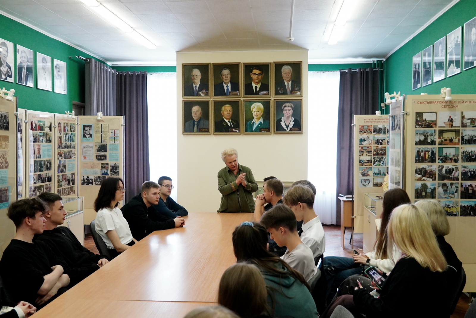 Профессор отдельно затронула тему своего профессионального пути, рассказала о работе на должности директора Сыктывкарского лесного института и о становлении вуза как ведущего отраслевого вуза региона. Также Валентина Васильевна презентовала ребятам издание «Символы Республики Коми». На страницах учебного пособия есть и приветственные и напутственные слова Валентины Васильевны, которая выступила в создании в качестве эксперта. Несколько экземпляров она оставила в библиотечный фонд вуза.