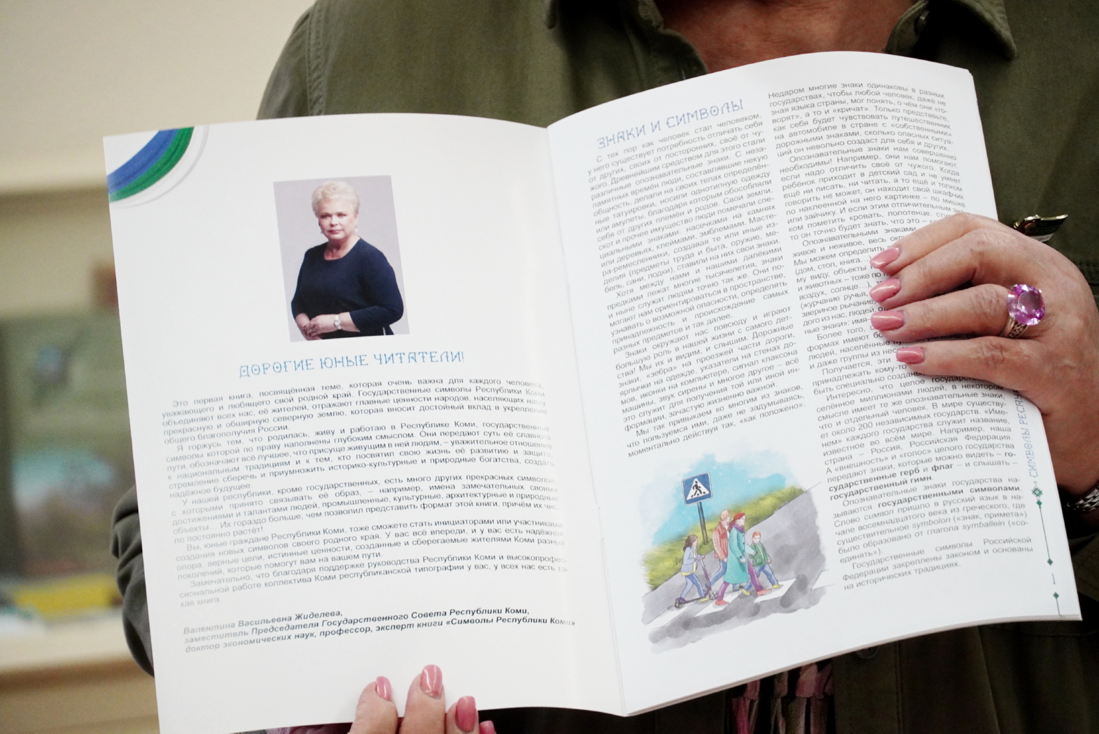 «Я горжусь тем, что родилась, живу и работаю в Республике Коми, государственные символы которой наполнены глубоким смыслом. Они передают суть ее славного пути, обозначают все лучшее, что присуще живущим в ней людям, – уважительное отношение к национальным традициям и к тем, кто посвятил свою жизнь ее развитию и защите, стремление сберечь и приумножить историко-культурные и природные богатства, создать надежное будущее», – подчеркнула Валентина Жиделева на встрече со студентами.