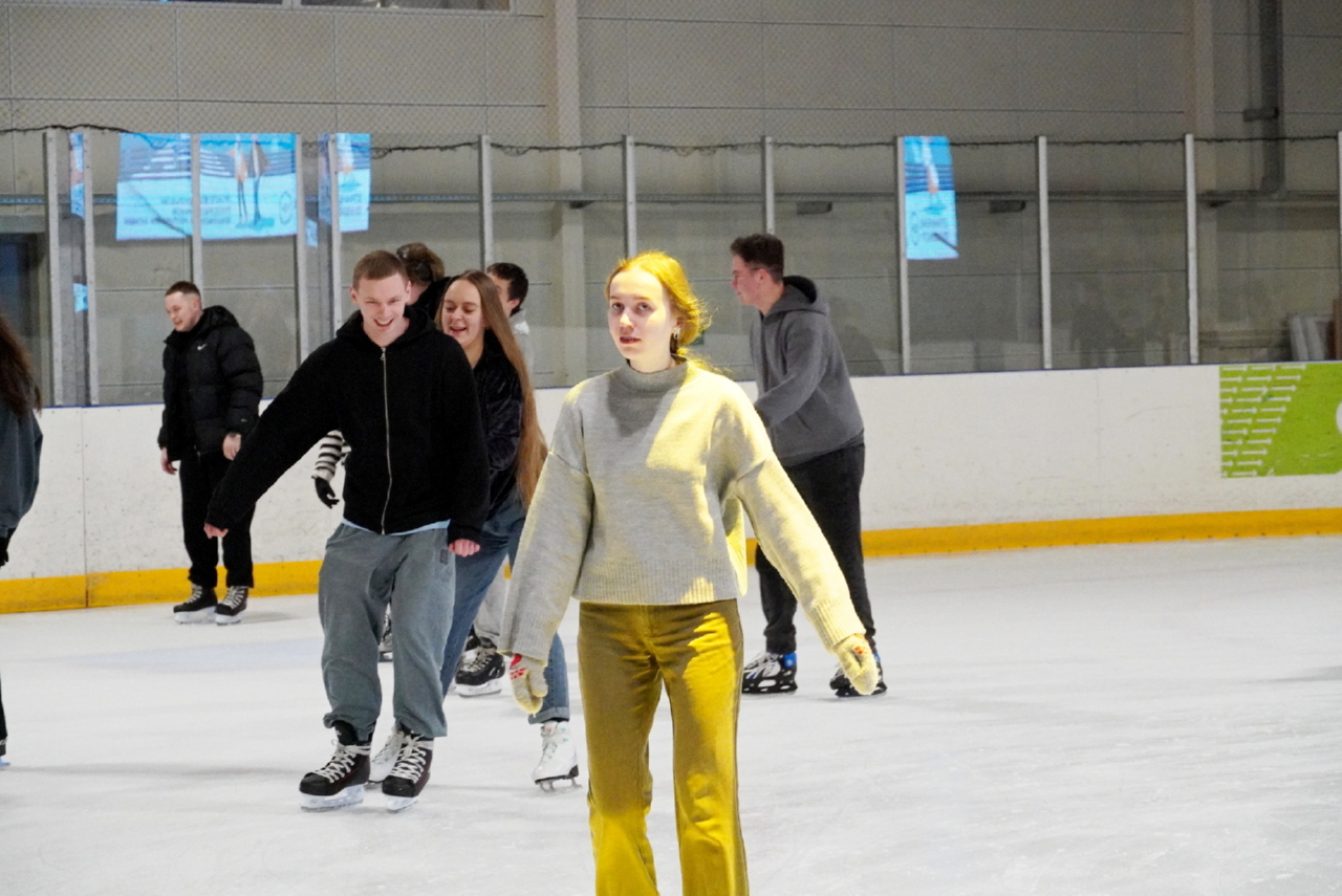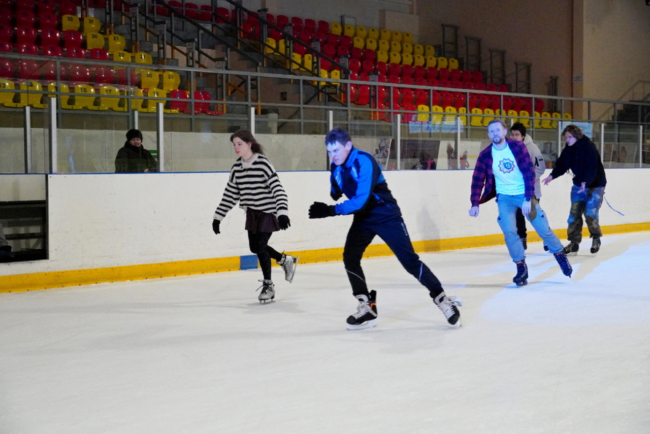 В сам праздничный день, 25 января, студентов ждала еще и вечерняя праздничная программа. Под популярную музыку современности ребята – новички и профи – показали свои навыки в катании на коньках. Так сказать, по-спортивному, весело и дружно провели выходное время.