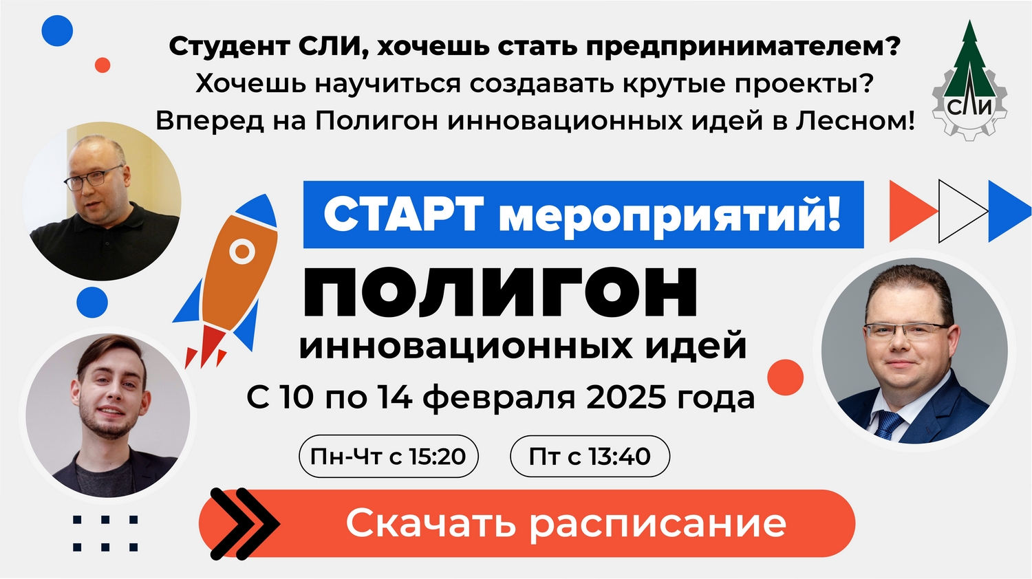 С 10 по 14 февраля 2025 года в Сыктывкарском лесном институте (ул. Ленина, д. 39) состоится Вторая сессия учебно-инновационной лаборатории «Полигон инновационных идей»