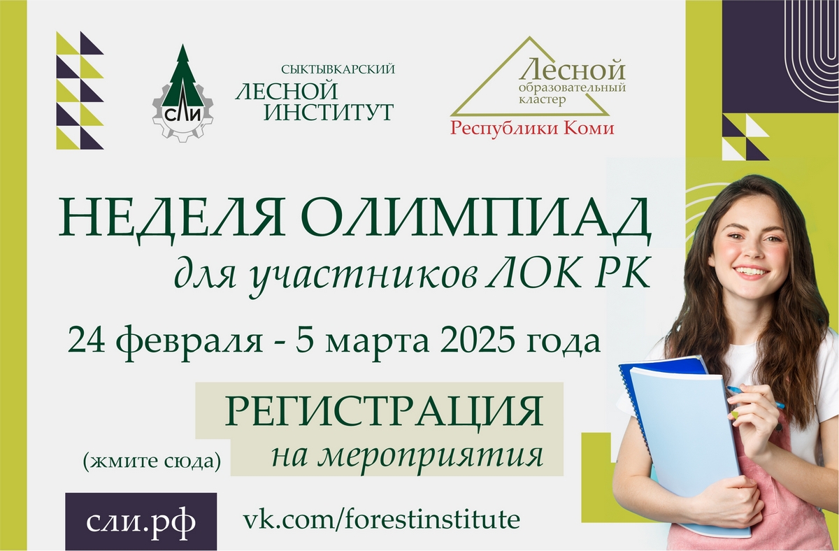 С 24 февраля по 5 марта 2025 года в Сыктывкарском лесном институте пройдет цикл мероприятий «Неделя олимпиад для участников ЛОК РК».