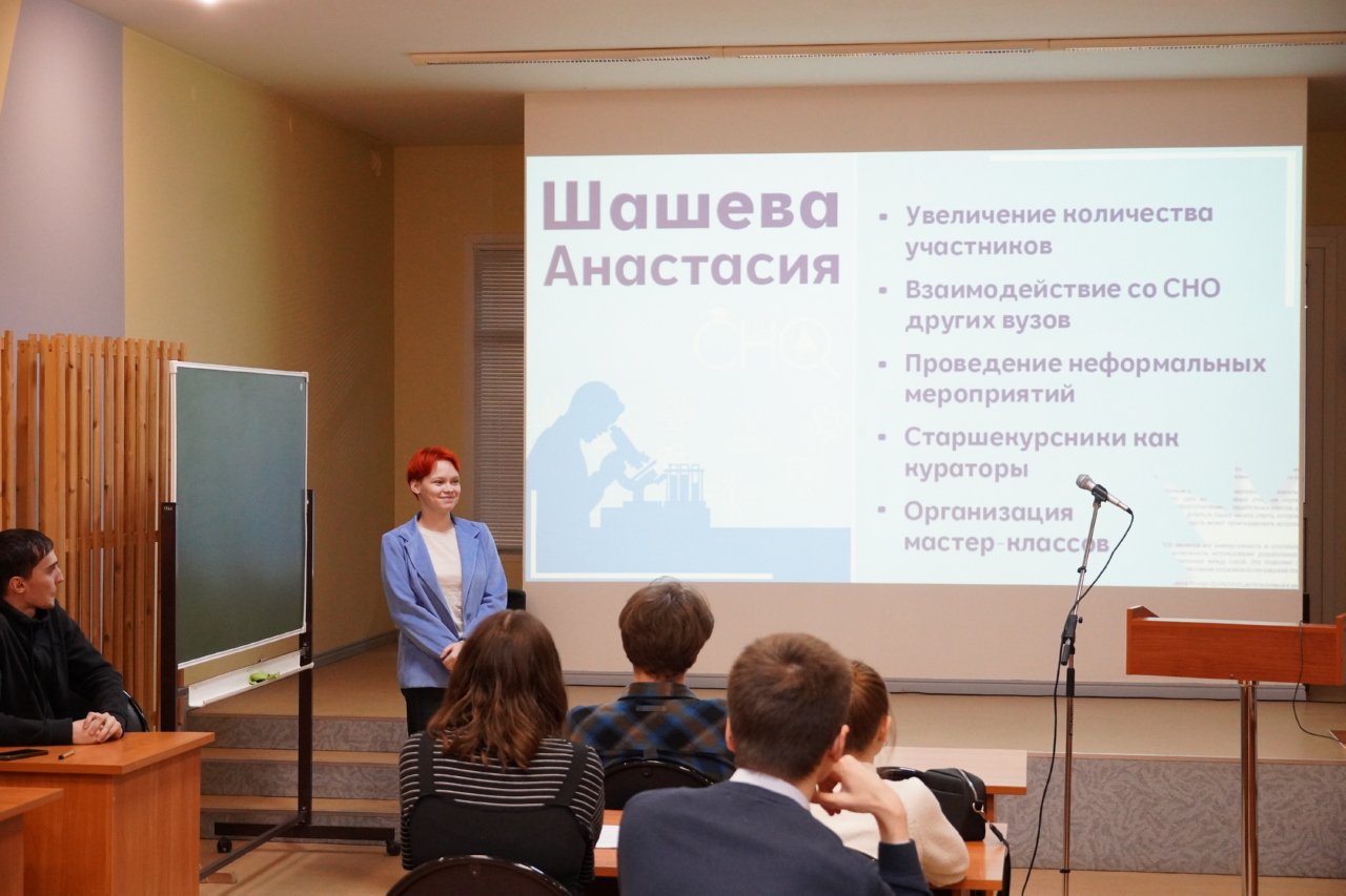 Заседание СНО СЛИ состоялось 7 февраля, накануне Дня российской науки. По результатам очного закрытого голосования всех членов СНО, набрав 79% голосов, новым Председателем избрана Анастасия Шашева, студентка третьего курса направления подготовки «Информационные системы и технологии». Всего в предвыборной гонке участвовало три кандидата.