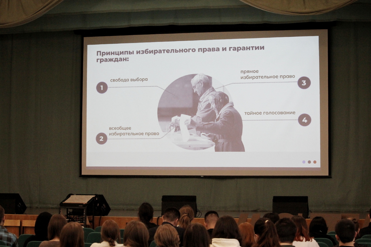 Студенты узнали о своих правах и обязанностях как избирателей, о том, как правильно подготовиться к выборам, как следить за соблюдением избирательных процедур и как защищать свои права в случае их нарушения.