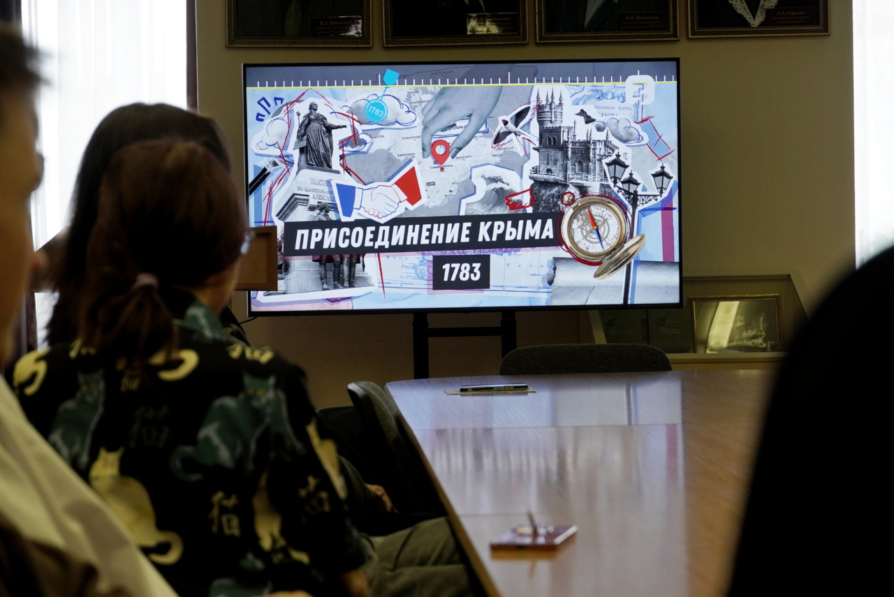 Студенты ознакомились с ключевыми вехами истории полуострова, начиная с древнейших времен до современности. Особое внимание было уделено значимости этих событий для народа нашей страны, а также предпосылкам, которые привели к воссоединению Крыма с Россией в 2014 году.