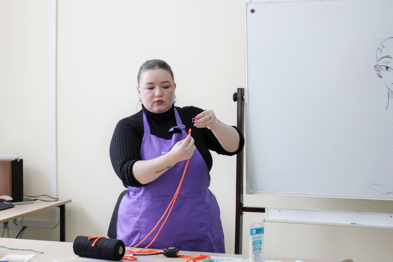 Первым творческим испытанием стало создание уникальных брелоков в технике макраме. Под чутким руководством опытного наставника участники освоили искусство завязывания узлов, создавая неповторимые текстуры и узоры. Макраме, как древняя техника плетения, позволила каждому участнику создать по-настоящему авторский аксессуар.