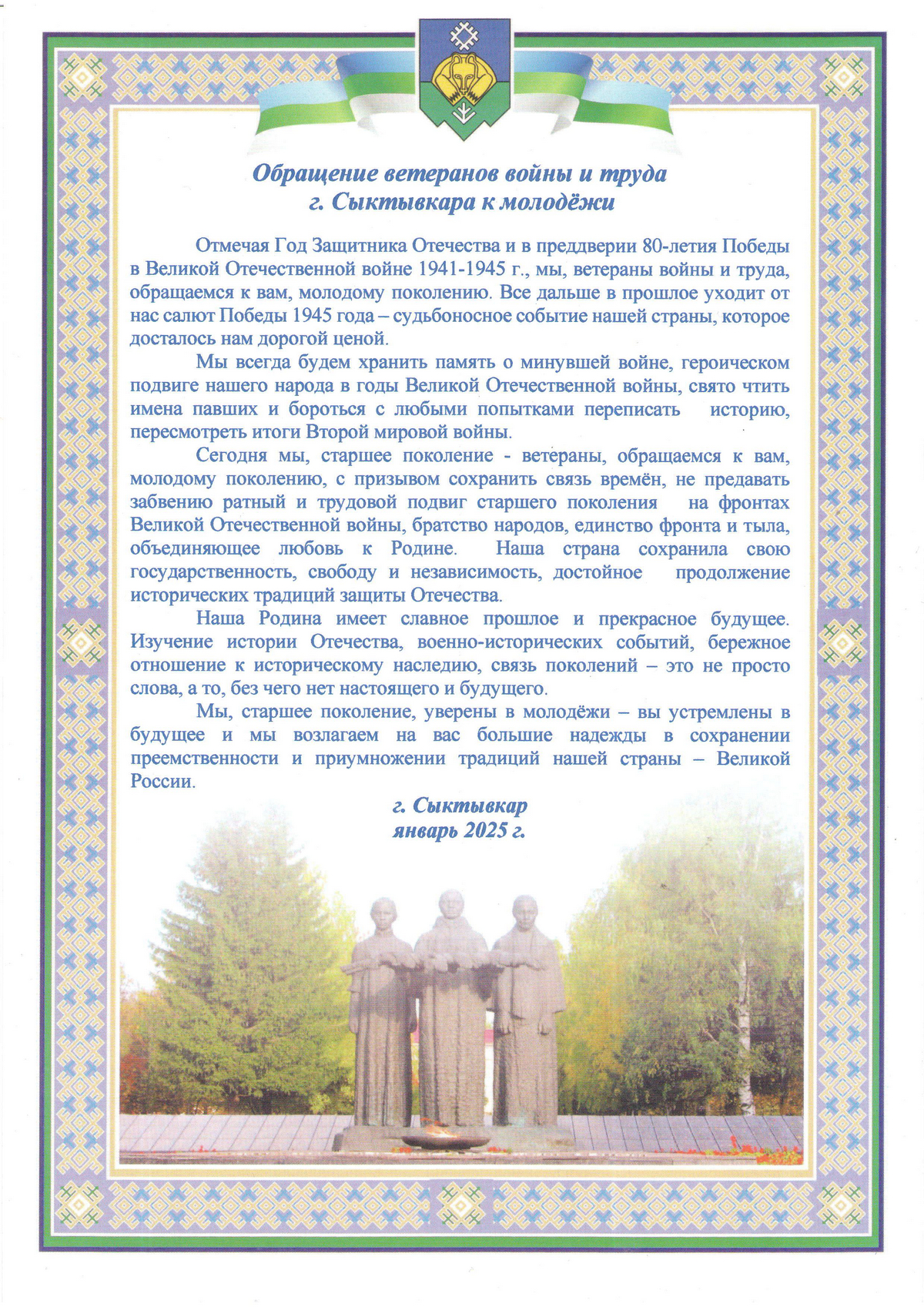 Обращение ветеранов воины и труда г. Сыктывкара к молодёжи