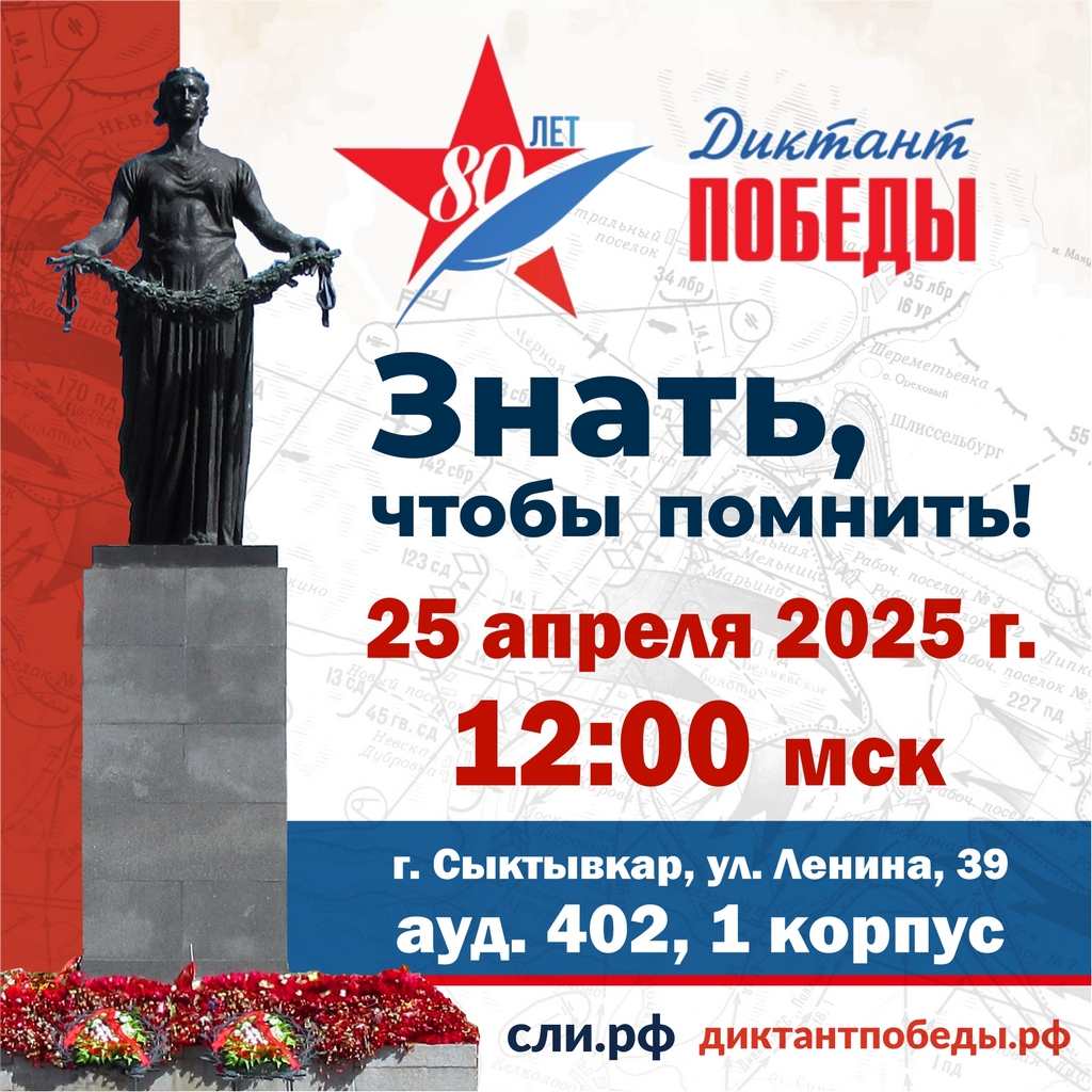 Студенты, преподаватели и работники СЛИ, приглашаем Вас присоединиться к Международной просветительско-патриотической акции «Диктант Победы»