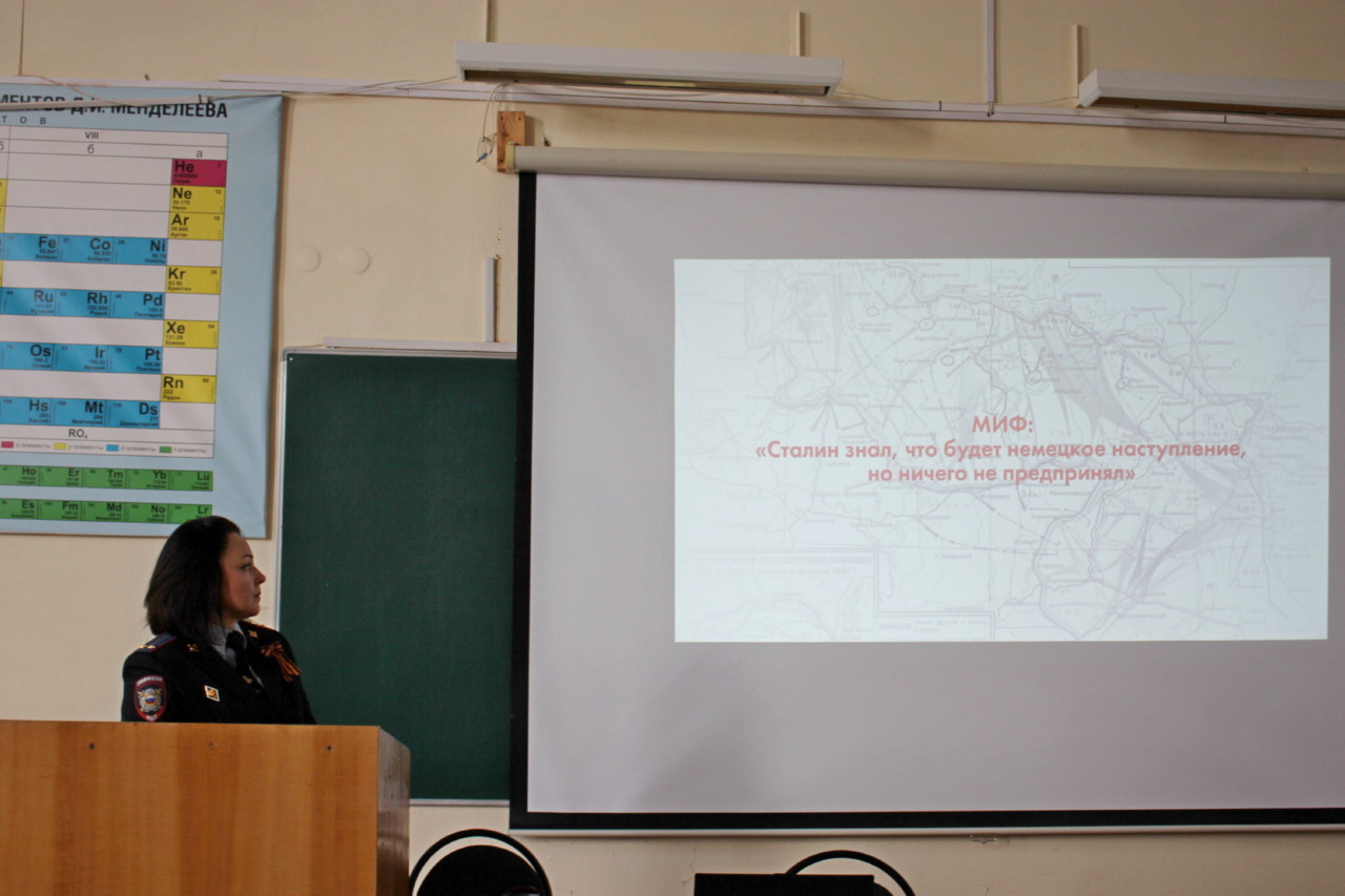 В ходе лекции были продемонстрированы информационные материалы о Великой Отечественной Войне, созданные специально для формирования у молодых людей способности отличать правду от лжи. Кроме того, короткие видеоролики о ключевых событиях военных лет позволили студентам узнать важные исторические факты, например – «Какая баталия является крупнейшим танковым сражением в истории?» или «По итогам какой битвы звание Героя Советского Союза было присвоено наибольшему количеству солдат и офицеров?».