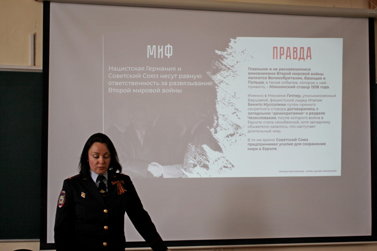 Ирина Рубцова привела конкретные примеры попыток фальсификаций, распространенных в современном информационном пространстве, призвав молодежь проявлять критическое мышление и анализировать информацию из различных источников.